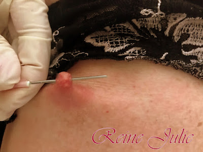Le jeu proposĂ© ou imposĂ©, nous intĂ©ressaient toutes les deux et nous Ă©tions excitĂ©es Ă  l’idĂ©e d’essayer ! J’avais apportĂ© des aiguilles tout d’abord, ma reine voulait me repercer de nouveau les tĂ©tons…
